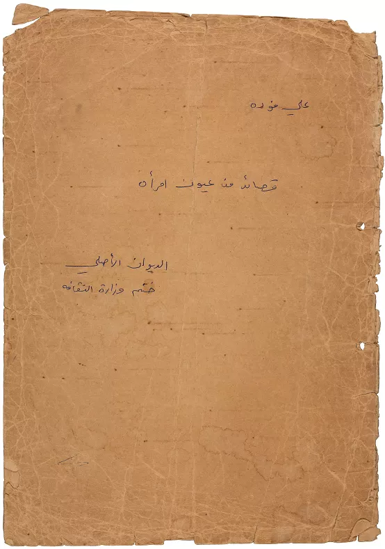 مجموعة شعرية بعنوان "قصائد من عيون امرأة" للشاعر علي فودة، في نسختها الأصلية قبل النشر، وتقع في25 صفحة، وتحمل المجموعة الشعرية اهداء من علي فودة الى صديقته.