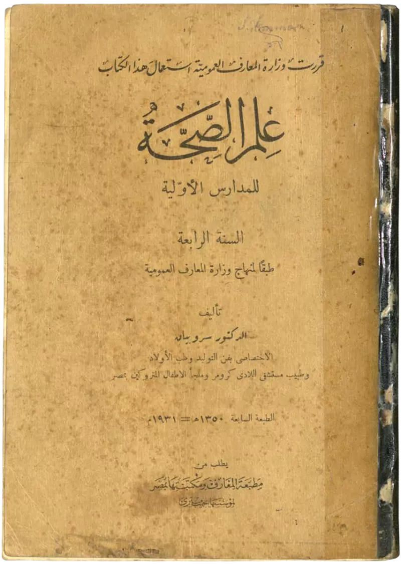 كتاب "علم الصحة" لمؤلفه الدكتور سروبيان، الاختصاصي بفن التوليد وطب الأولاد وطبيب مستشفى اللادي كرومر وملجأ الاطفال المتروكين بمصر، صدر عن مطبعة المعارف عام 1931م، ويقع في 112 صفحة.
