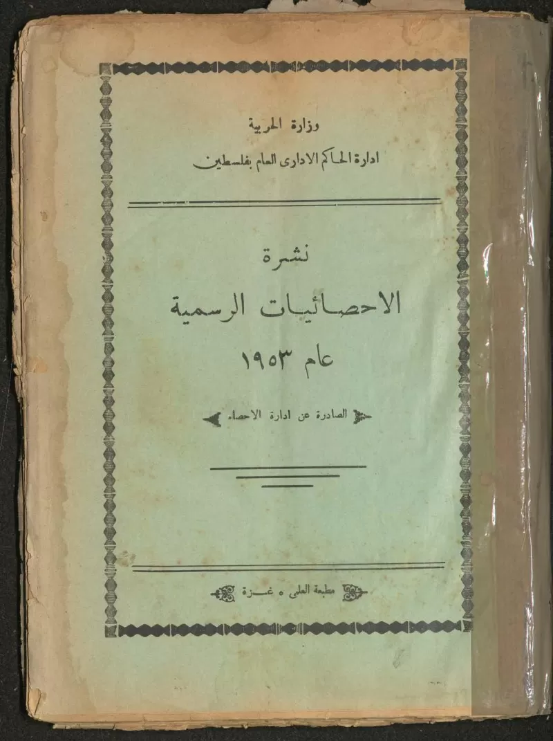 نشرة الاحصائيات الرسمية لاعداد السكان وحالات الولادة والوفيات والتعداد السكاني لقطاع غزة، صدرت عن ادارة الاحصاء وطُبعت أعداد متفرقة منه في مطبعة العلمي في غزة حيث طُبع العدد الرابع عشر في العام 1953، بينما طبعت الأعداد من 30 إلى 39 في العام 1954، وجمّعت في نشرة واحدة، تقع النشرة في 134 صفحة.