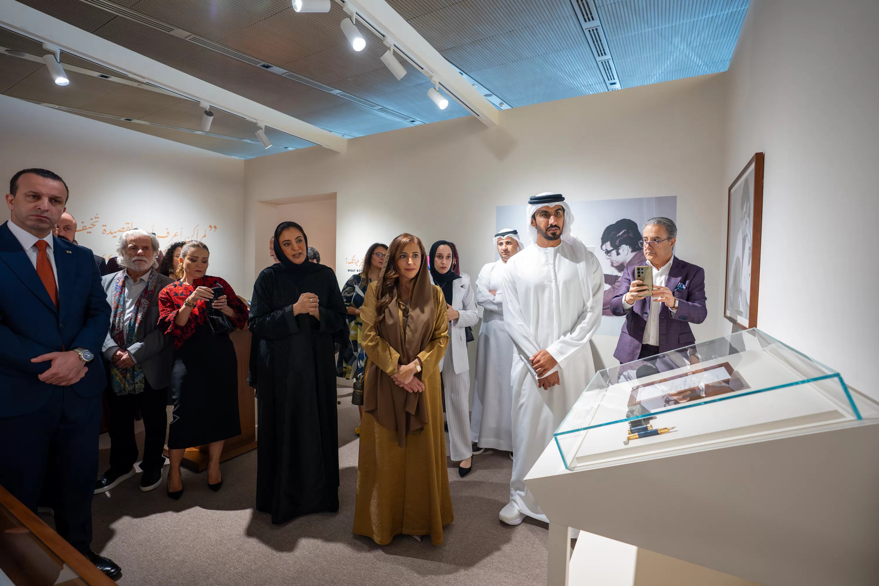 من جهته، قال عامر الشوملي، مدير عامّ المتحف الفلسطيني: "في إحدى الأمسيات جلست على بُعد مترين فقط من الشاعر محمود درويش، وكانت تجربة استثنائيّة شعرت خلالها وكأنّني أراه وأسمعه للمرّة الأولى. واليوم، أعاد إليّ هذا المعرض الإحساس نفسه بأنّنا نقف على المسافة ذاتها من محمود درويش؛ مسافة تسمح بالاقتراب الحقيقي من إرثه الحيّ، ويعود الفضل في ذلك إلى الجهد الكبير الذي بذلته المؤسّسات المشاركة، وفي مقدّمتها مكتبة بيت الحكمة وسموّ الشيخة بدور القاسمي، التي منحت الجمهور العربي فرصة نادرة للولوج إلى عمق الكواليس، والاقتراب من تجربة الشاعر بشكل مباشر". وأضاف شوملي: "أرى أنّ الدور الأسمى للمؤسّسات الثقافيّة هو كشف الكواليس لجمهورها، وجعل الثقافة قريبة وواضحة للناس. وقد نجح هذا المعرض في تقديم شعر محمود درويش بطريقة مباشرة وواضحة، تسهم في تعزيز هذا القرب".