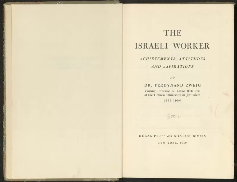 كتاب "العامل الاسرائيلي: الانجازات، السلوكيات، والتطلعات" لمؤلفه الدكتور فرديناند تسفايغ، بروفيسور زائر في علاقات العمل في الجامعة العبرية في القدس.صدر الكتاب عن دور نشر هرتزل وشارون في نيويورك عام 1959، ويقع في 305 صفحة. الكتاب مهدى لزوجة المؤلف، دورا